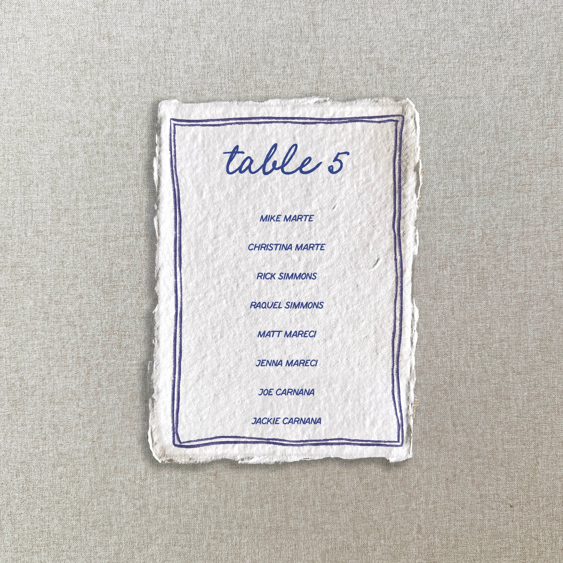 ✨ Professionally printed seating chart cards on your choice of paper (watercolor paper is textured with straight edges, handmade paper is textured with rough, deckled edges)