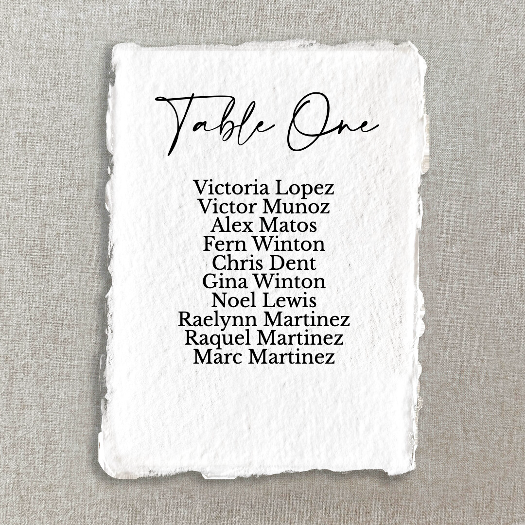 ✨ Professionally printed seating chart cards on your choice of paper (watercolor paper is textured with straight edges, handmade paper is textured with rough, deckled edges)