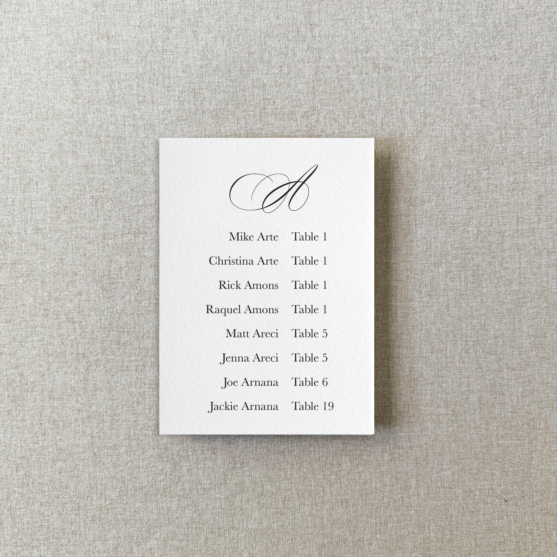 Custom Printed Seating Chart Cards – Personalized with Your Details via Corjl