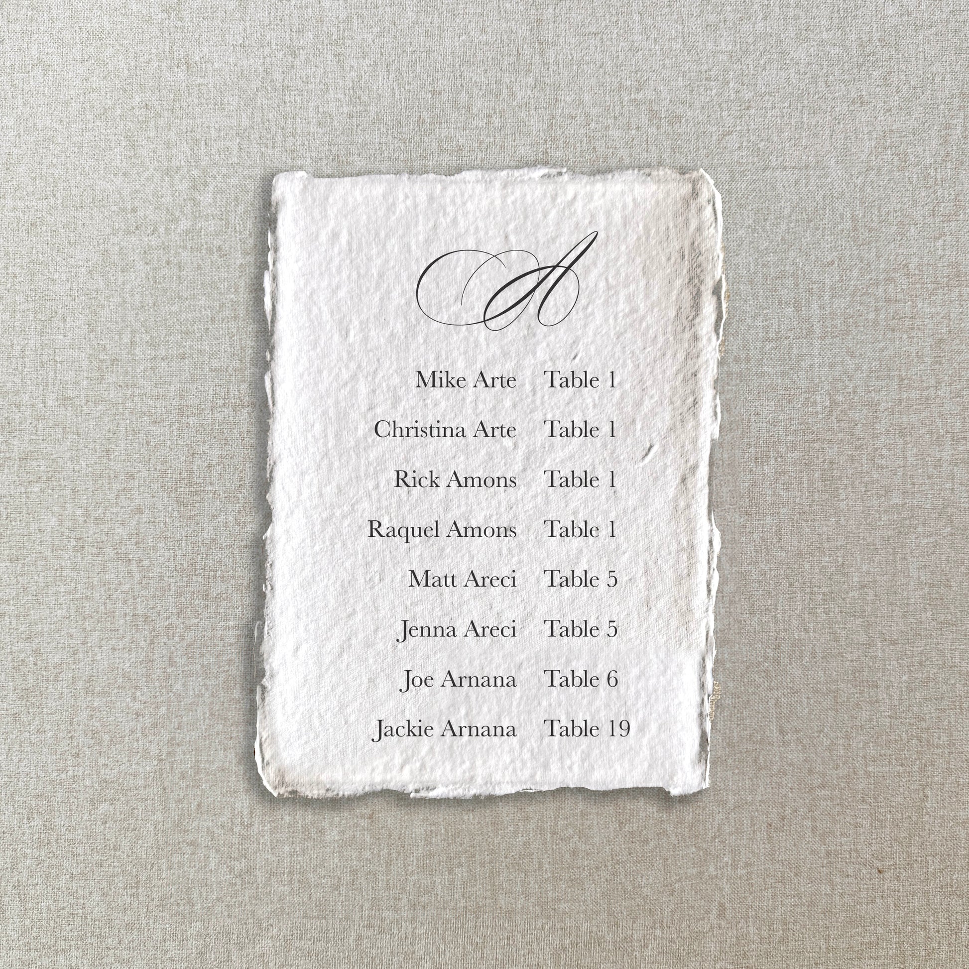 ✨ Professionally printed seating chart cards on your choice of paper (watercolor paper is textured with straight edges, handmade paper is textured with rough, deckled edges)
